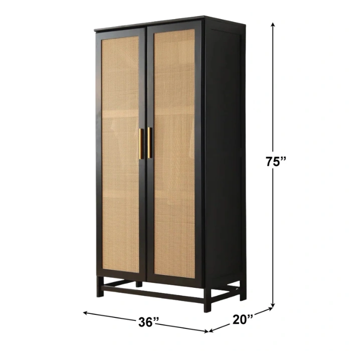 | Frame Material: | Solid Pine Wood with Woven Rattan Door Panels |
