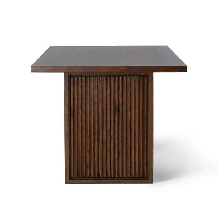 The table is where the design does the talking. Instead of basic legs, it features a textured fluted base dining table look that gives a designer finish and a solid, grounded presence. It also fits the search intent of a pedestal dining table because the base structure is strong, stable, and visually balanced.