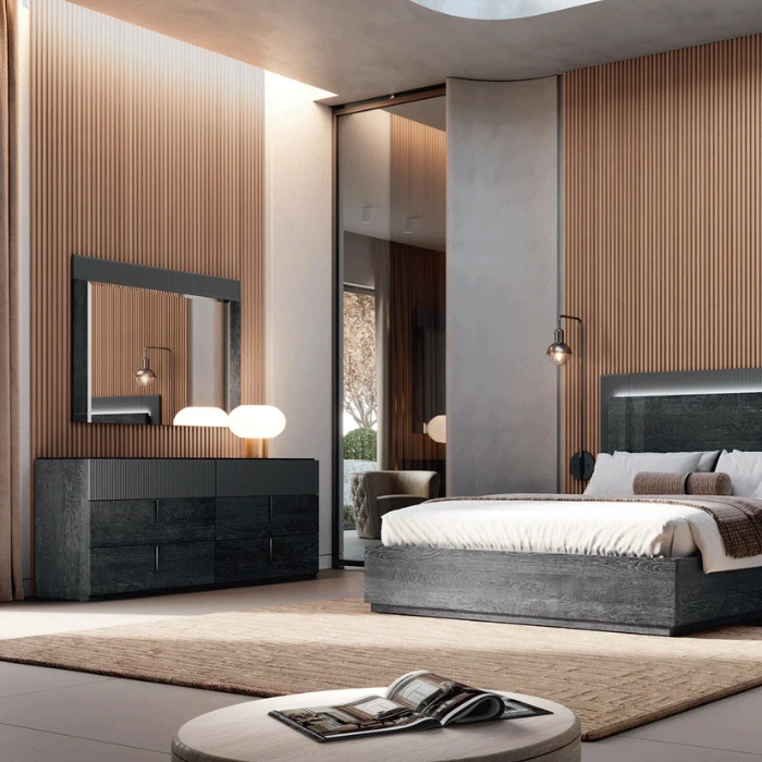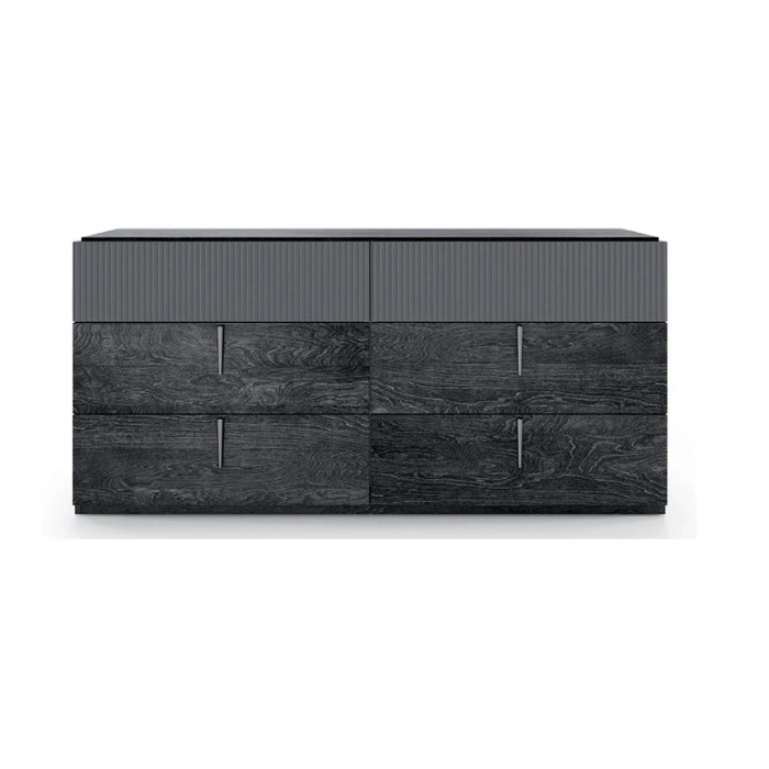 Meet the Eclipse dresser, where clean lines, deep storage, and a rich charcoal wood-grain finish bring calm to your space. The fluted top drawers and slim vertical pulls add quiet texture, while a sturdy plinth base keeps the silhouette grounded. With eight roomy compartments, it offers noticeably more capacity than a typical 6 drawer dresser, so every tee, scarf, and spare set of sheets has a home. If you’re shopping for a dresser for bedroom needs or comparing a bedroom dresser online, Eclipse delivers modern style without the fuss. (Mirror shown in lifestyle images is not included.)