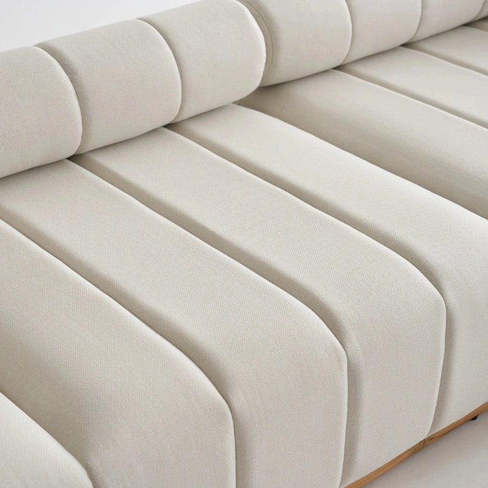 • The Fabric: The cushions are wrapped in a gorgeous, light beige Olefin fabric. In plain English: this fabric is incredibly tough. It actively repels water and resists UV fading far better than standard cotton or polyester.