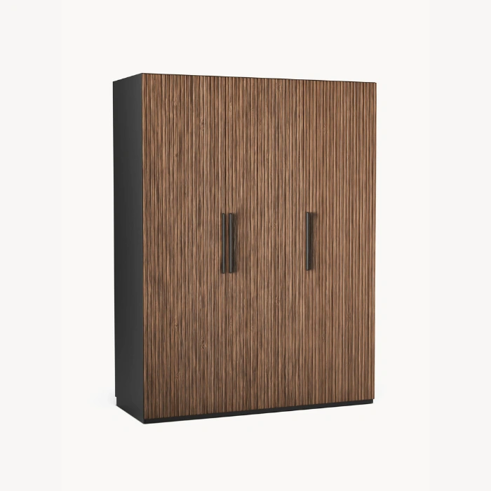 Transform your bedroom into a modern sanctuary with the Graino Wardrobe. Defined by its architectural lines and rich texture, this modern fluted wooden wardrobe brings a high-end, designer feel to your home. Whether you are outfitting a new apartment in Lahore or refreshing your master suite in Multan, the Graino serves as a visually striking statement piece that effortlessly hides your daily clutter.