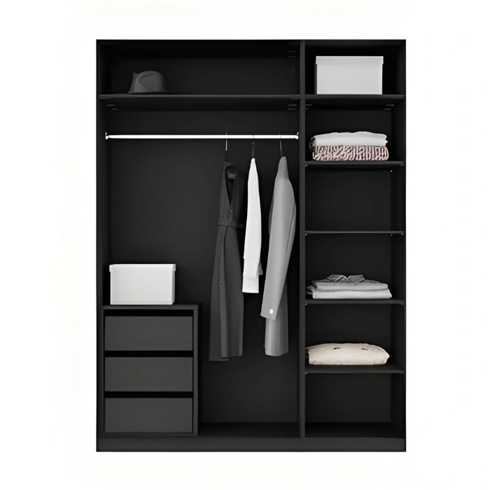 The main body of the wardrobe is constructed from high-grade chipboard, expertly finished with a scratch-resistant melamine coating. This combination ensures maximum structural integrity and longevity, specifically designed to withstand daily use and varying climates across the country.