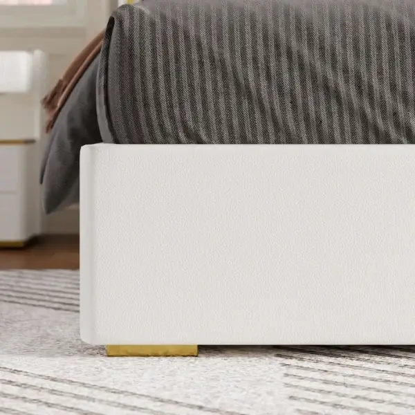 The Linea Bed blends a boutique-hotel vibe with real-life comfort: off-white, soft-touch upholstery, plush panel headboard, and refined gold accents. A quiet slat platform supports your mattress, no box spring needed, while the rounded corners and wrapped base keep the look calm and contemporary. If you’re browsing upholstered beds, this design stands out for its sink-in backrest and easy-clean finish that styles beautifully with any palette.
