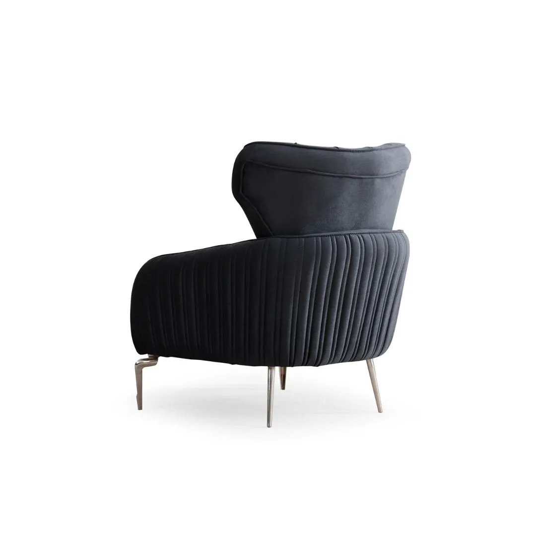 Add bold elegance to your home with the Mathilda Armchair, featuring luxe black velvet, modern tufting, and a striking contemporary silhouette.