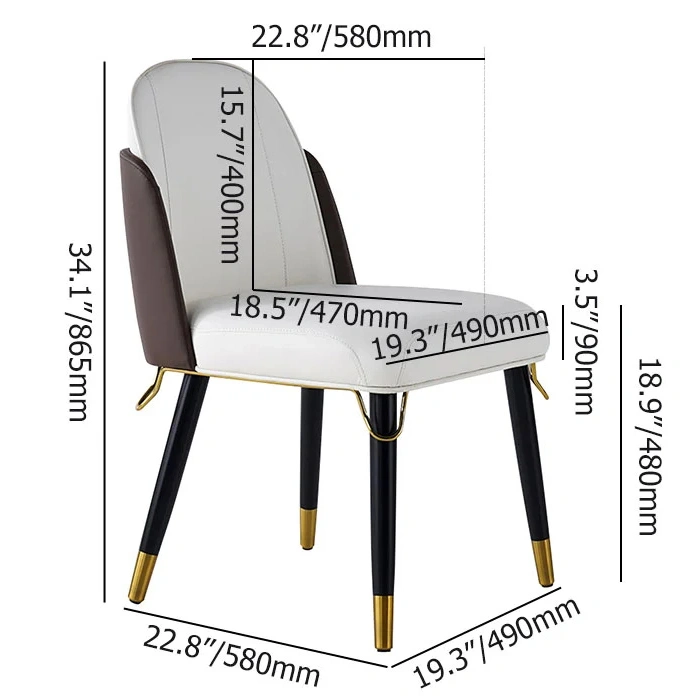 The Monaco Chair brings a refined modern aesthetic to your dining space. Its smooth white leatherette seat pairs elegantly with a mocha-brown backrest, highlighted by gold details and tapered wooden legs. This chair blends sophistication and comfort, making it perfect for contemporary homes that appreciate understated luxury. Whether styled around a marble or wood table, it enhances any dining area with a boutique-hotel charm.