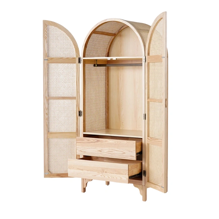 Ash Wood Wardrobe Frame with Cane and Rattan Design