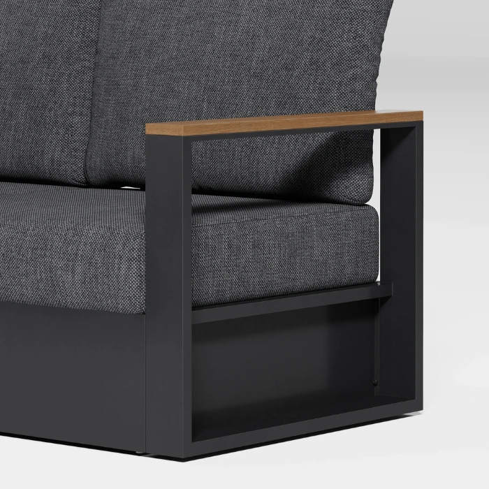 • Sink into high-density foam cushions wrapped in washable, water-resistant grey polyester fabric.