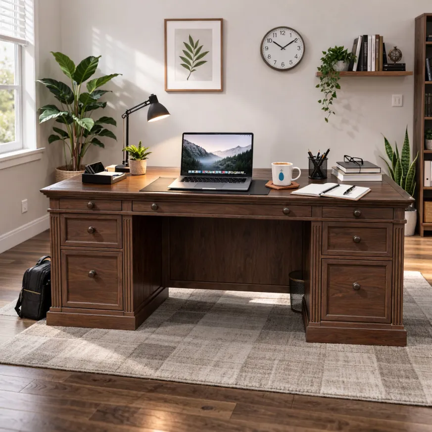 And if you prefer a richer, more formal vibe, it also works perfectly as a dark brown executive desk (especially in offices with darker flooring, leather chairs, or classic wall colors).