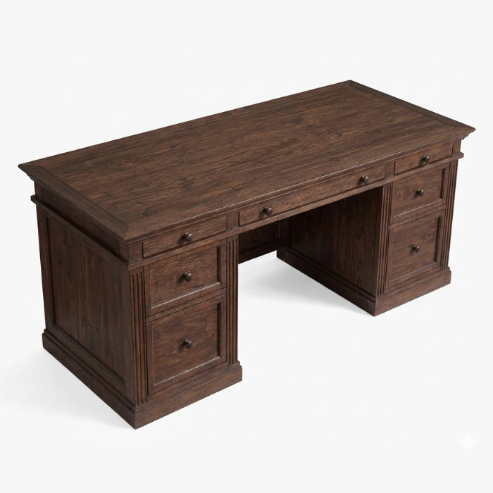 Crafted by ROCO from solid oak wood with a premium finish, Stalwart brings the kind of presence you usually only see in corporate offices, but sized perfectly for Pakistani homes and private workspaces. The wide top gives you room to spread out, while the classic paneled build keeps it timeless, not trendy. It looks professional on Zoom, it feels solid in daily use, and it makes work feel more focused.