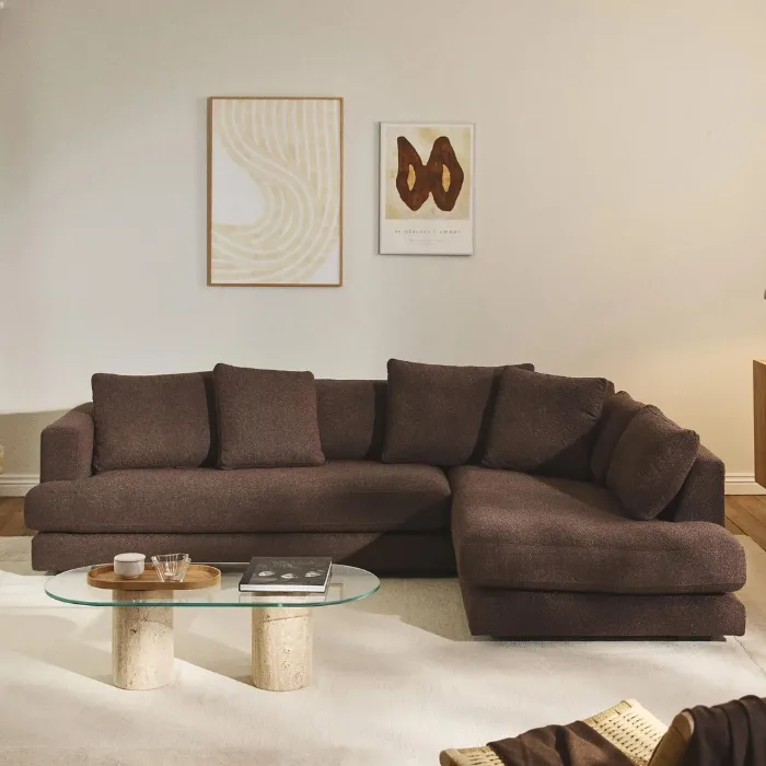 The Summit L-Section Sofa is designed to bring the whole family together. With its generous seating space, soft bouclé fabric, and timeless design, this minimalist L-Section sofa is perfect for relaxing, watching TV, or entertaining guests in your home.