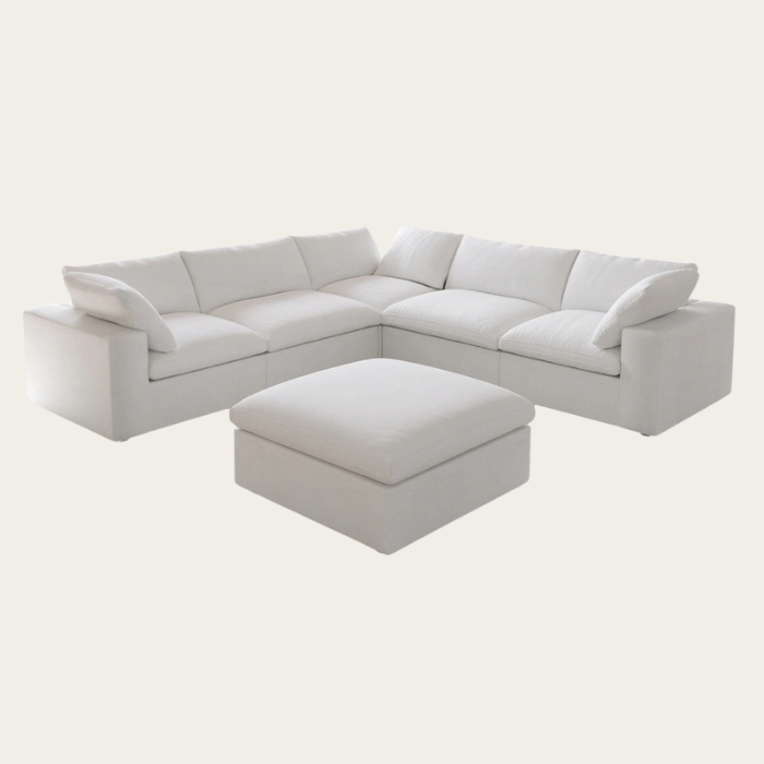 Available in a range of luxurious fabrics, the Valiant Corner Sectional Sofa offers the ultimate in customization. Choose from Pristine White in Less Wool Bouclé for a contemporary feel, Classic Grey in Premium Jute for timeless elegance, or explore Custom Fabric Options to personalize your sofa to your unique style. No matter the fabric, you’re guaranteed a stylish, durable, and comfortable piece that enhances your living space.
